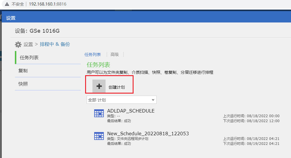 1、“设置”—“排程备份”—“任务列表”–“创建计划”
