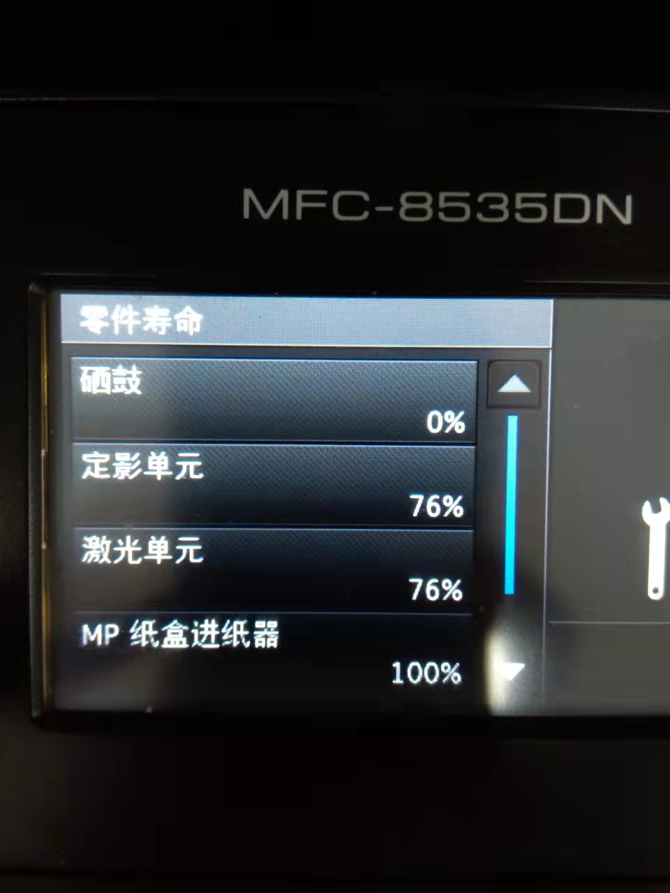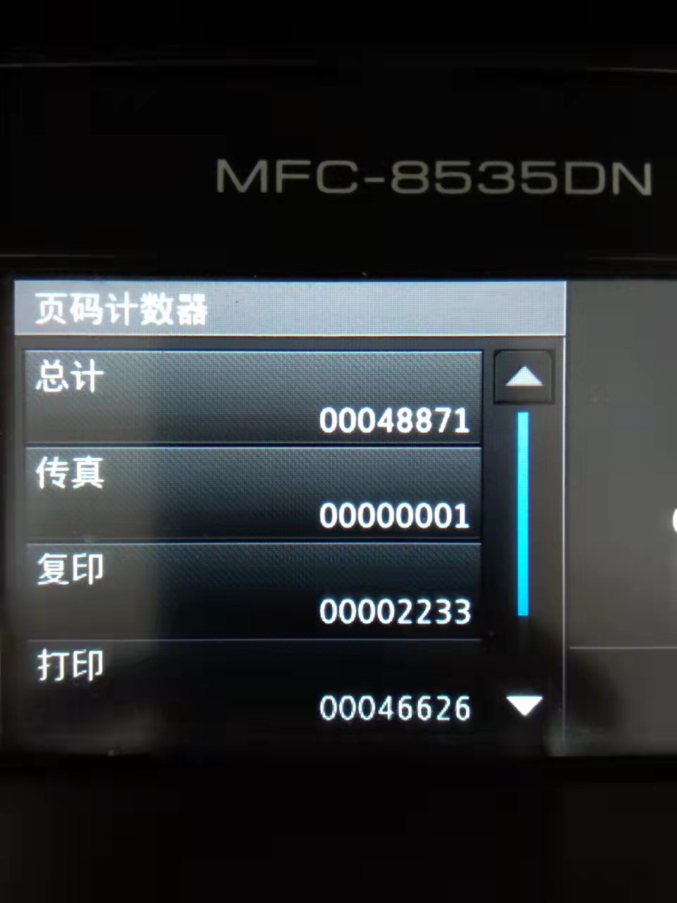 兄弟MFC-8535DN因打印出来的纸张有黑边和字影,更换硒鼓后打印效果恢复正常。更换硒鼓后,需要重置硒鼓计数器。 重置硒鼓计数器步骤: